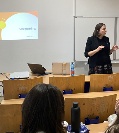 V rámci predmetu Sociálna ochrana a sociálna inklúzia vyučovaného v rámci študijného programu Sociálny manažment a ľudské zdroje sme privítali Dášu Cingálkovú z Rady mládeže Slovenska, ktorá študentom priblížila tému Safeguarding – ochranu zraniteľných osôb (s dôrazom na deti a mládež) pred rizikami zanedbávania, zneužívania či diskriminácie.